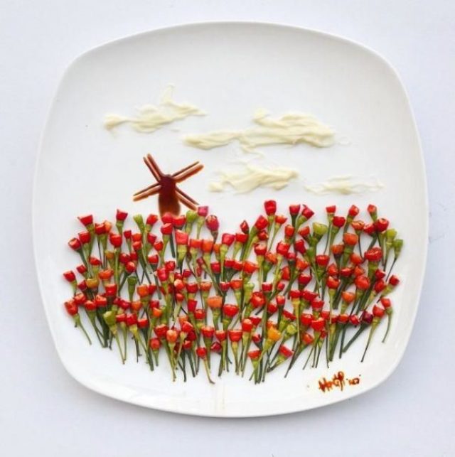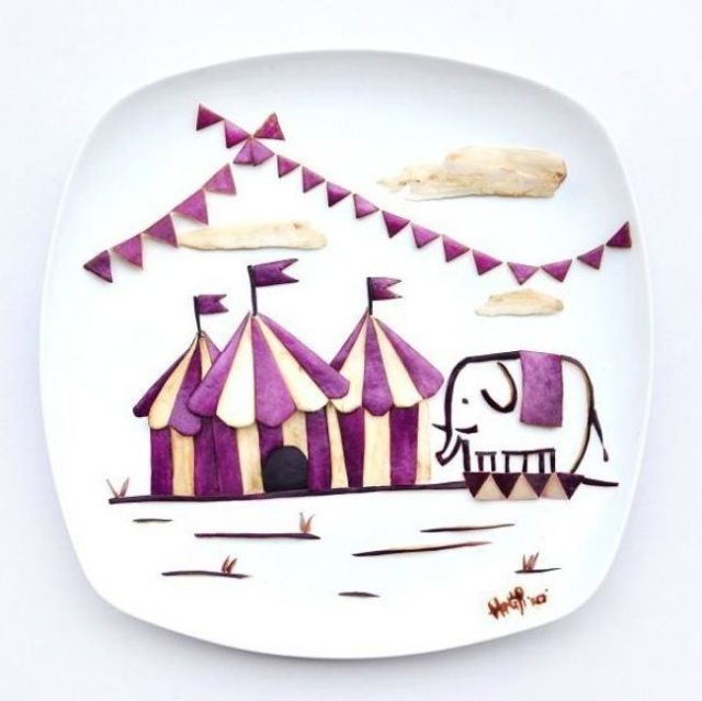 Namiesto plátna používa tanier, farby a štetce vymenila za ovocie, zeleninu a ďalšie potraviny – Hong Yi každý deň tvorí originálne jedlé obrazy, ktorým nechýba vtip a fantázia.Hong Yi