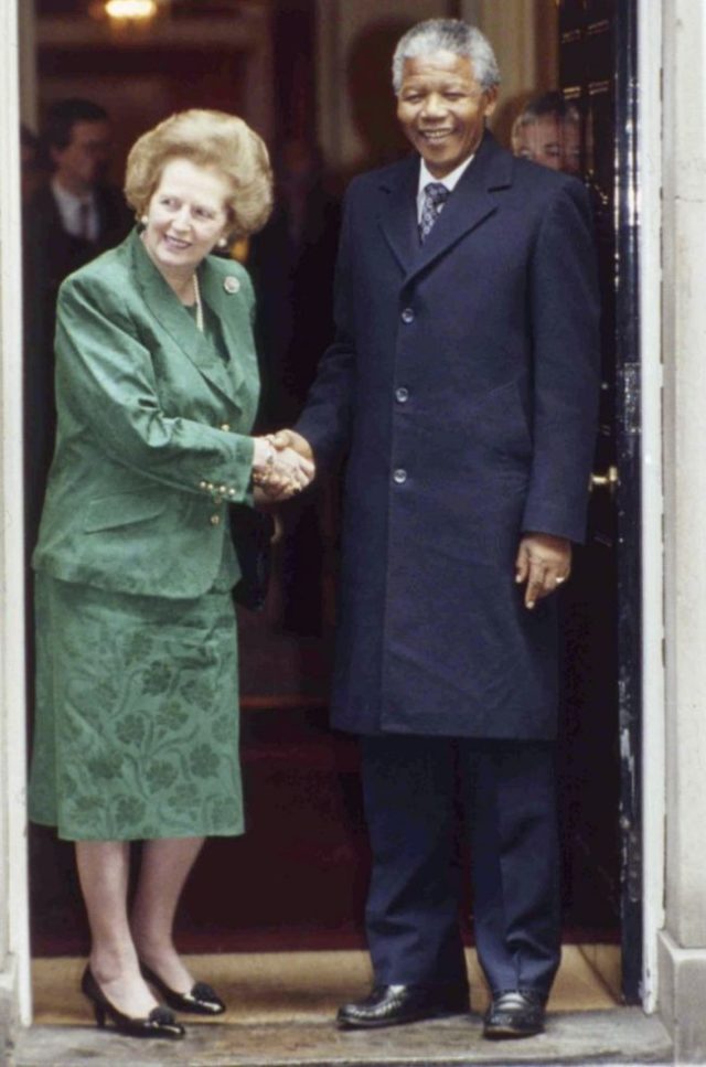Margaret Thatcherová s Nelsonom Mandelom.SITA/AP