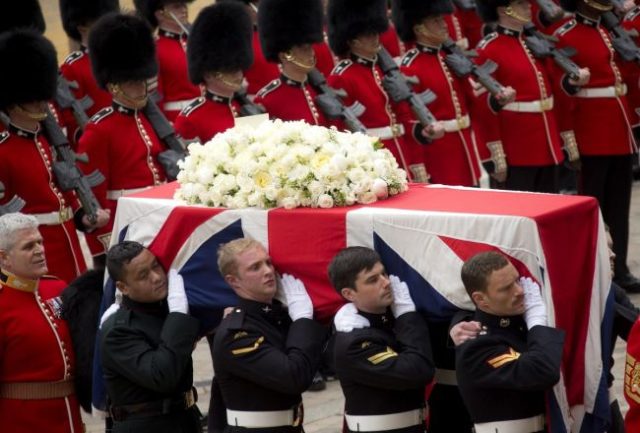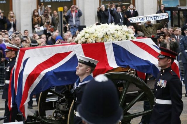 V Británii sa dnes rozlúčili s expremiérkou Margaret Thatcherovou.SITA/AP