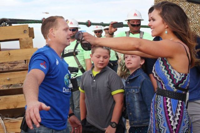 Povrazochodca Nika Wallenda víta manželka Erendira po skončení jeho husárskeho kúsku nad Grand Canyonom.SITA/AP